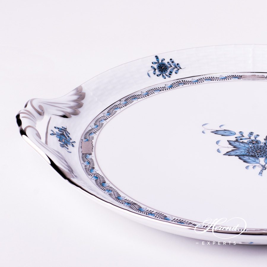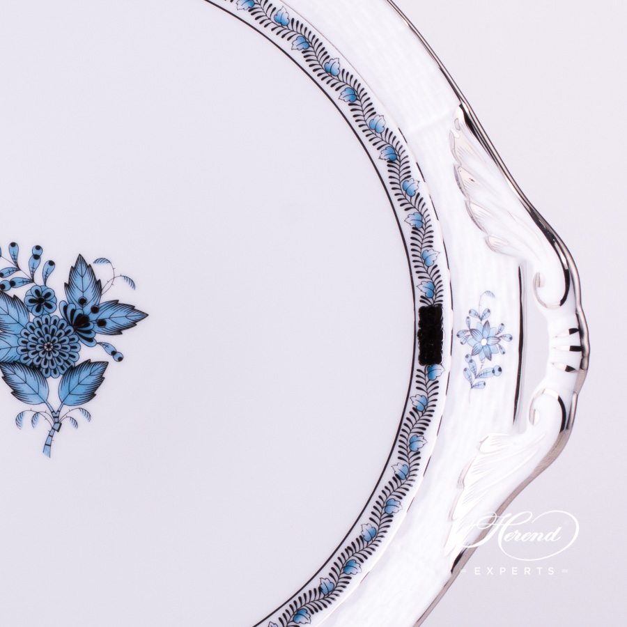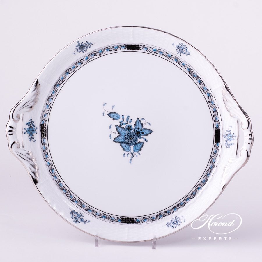 Herend fine china Cake Plate with Handle – Herend, Chinese Bouquet Turquoise / Apponyi Turquoise with Platinum – ATQ3-PT design.