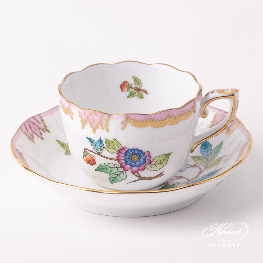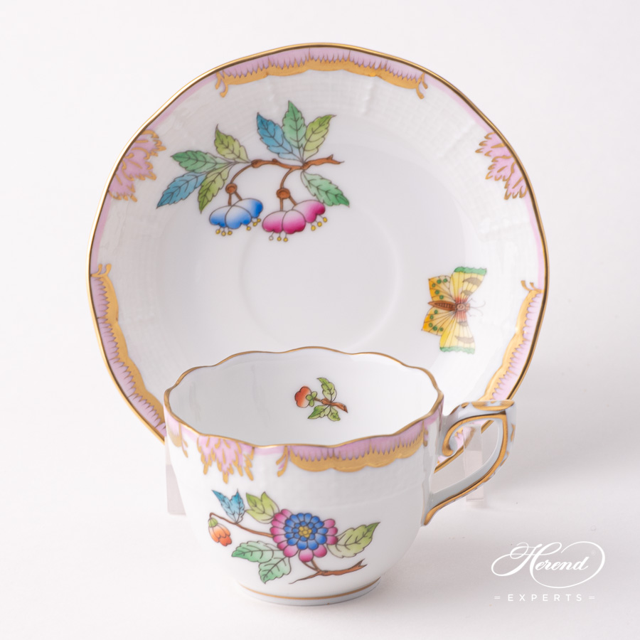 Herend porcelain Coffee Cup / Demitasse with Saucer – Herend, Queen Victoria-A Pink Edge – VBA-Y2 design.