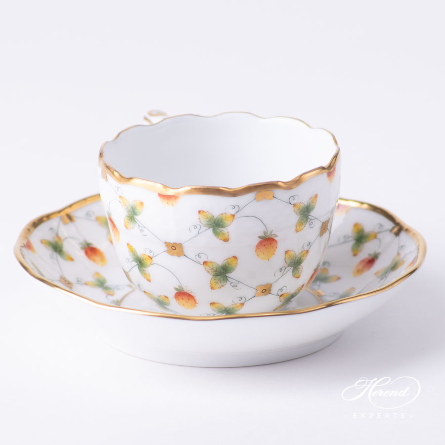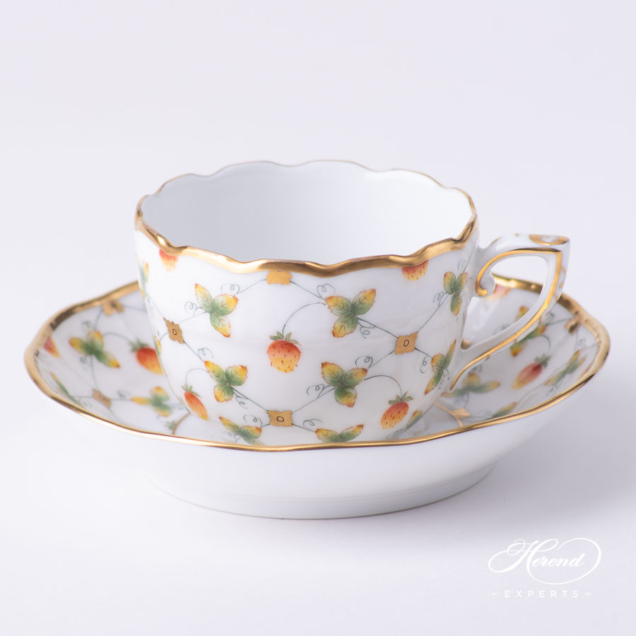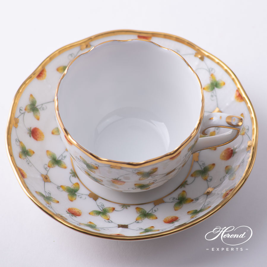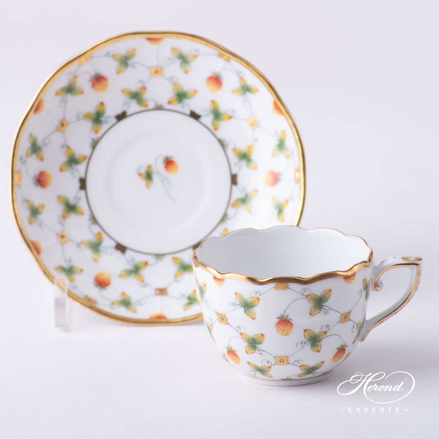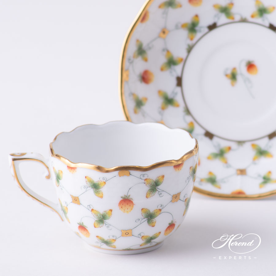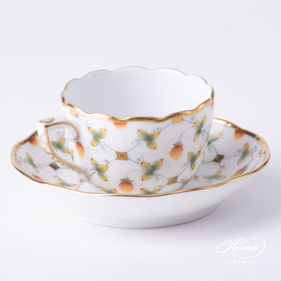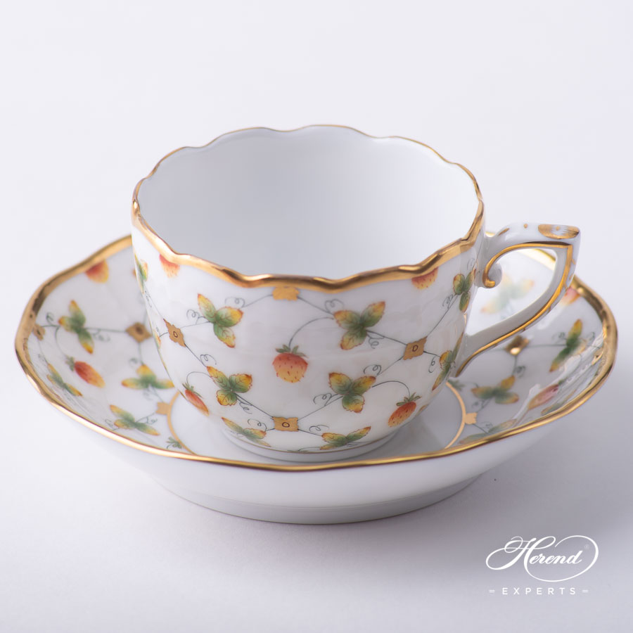 Herend porcelain Demitasse / Coffee Cup with Saucer – Herend Strawberry in Lace – FLT pattern.