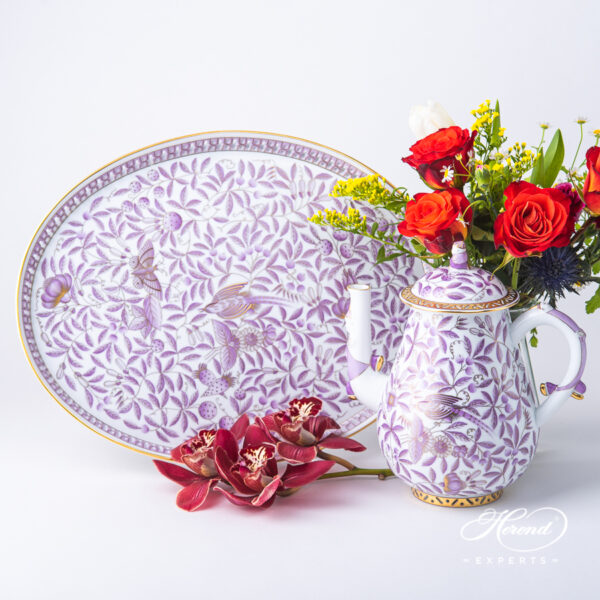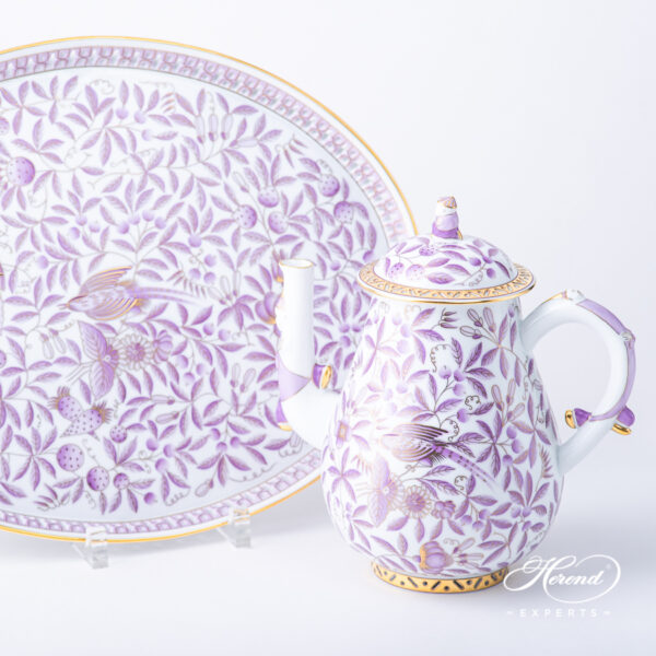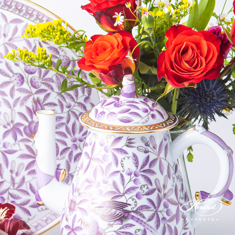 Herend fine china Coffee Pot with Mandarin Knob – Herend, Jardin Zoologique Lilac / ZOLA design.