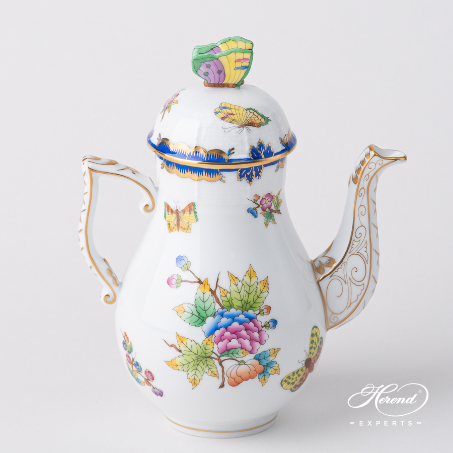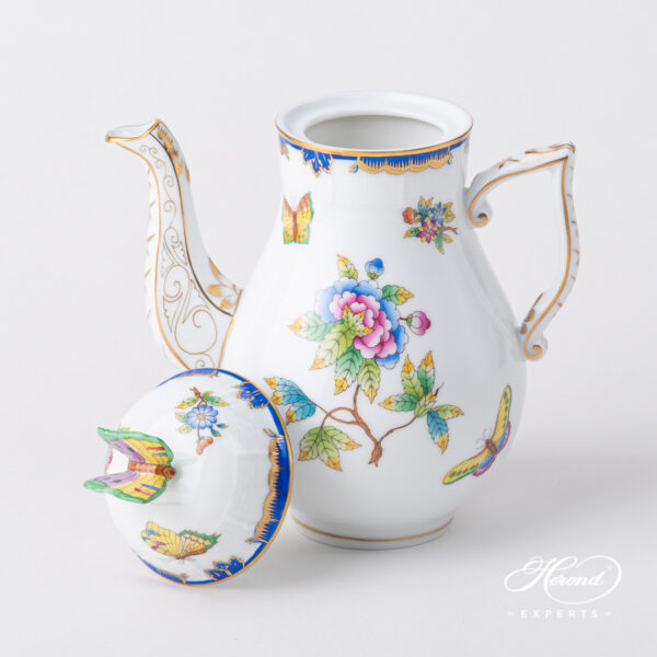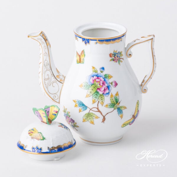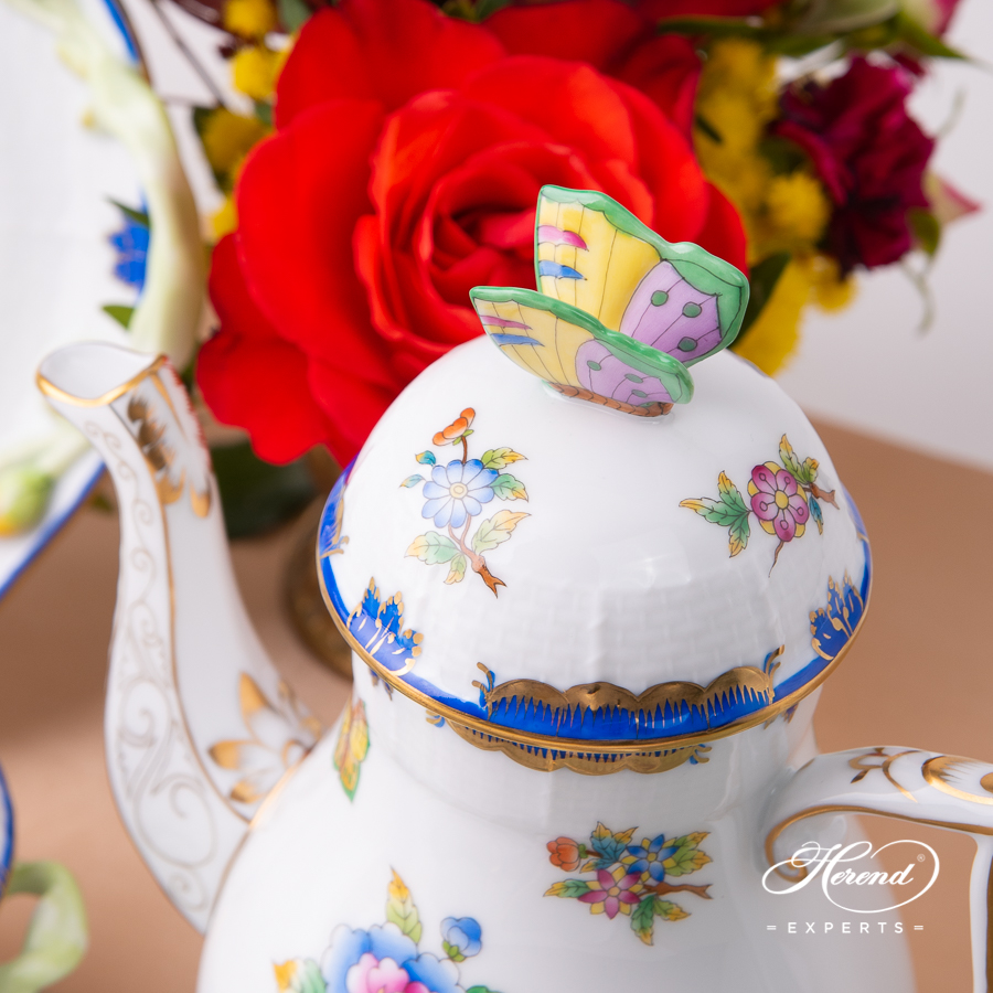 Herend porcelain Coffee Pot with Butterfly Knob – Herend, Queen Victoria Navy Blue Edge – VBO-Y3 design.