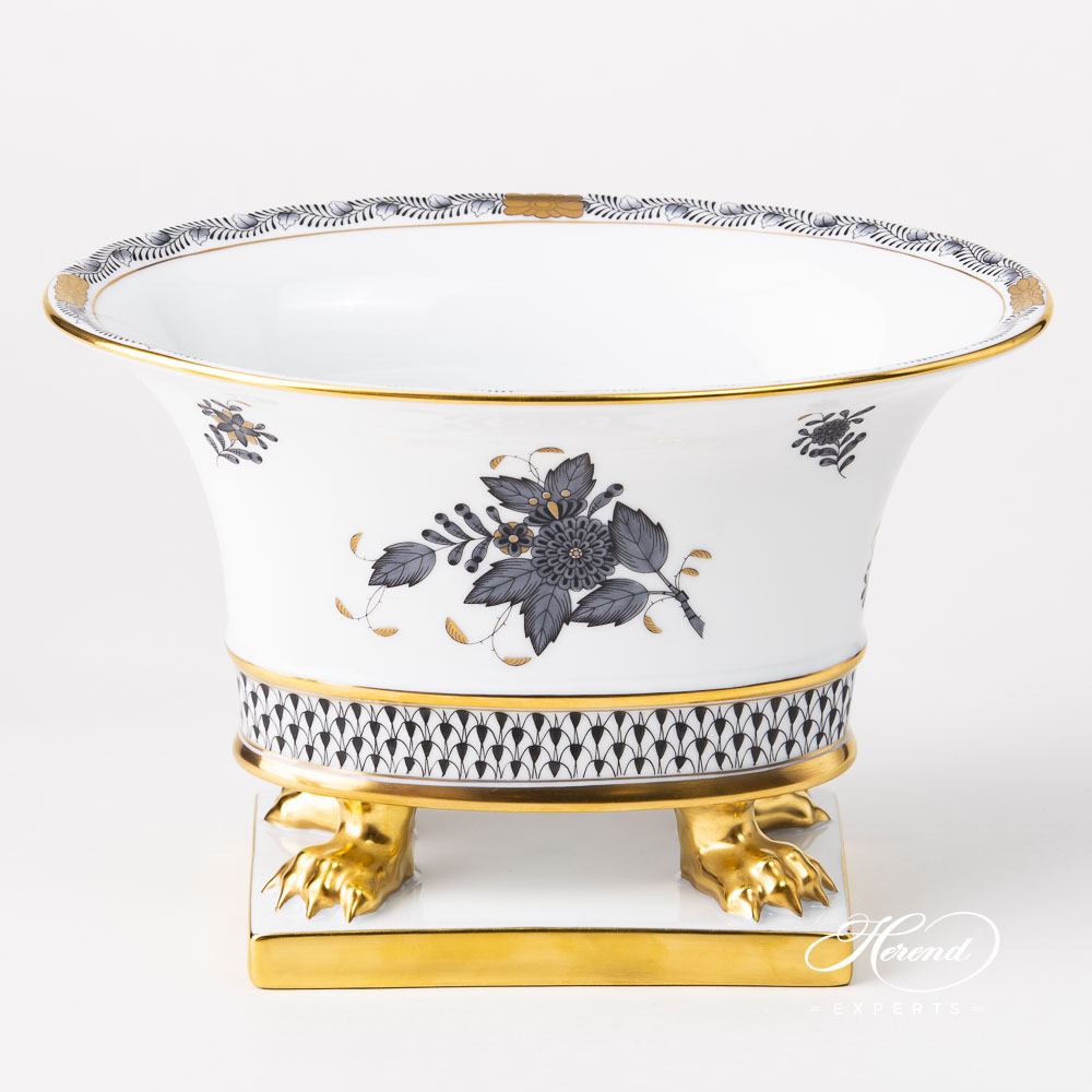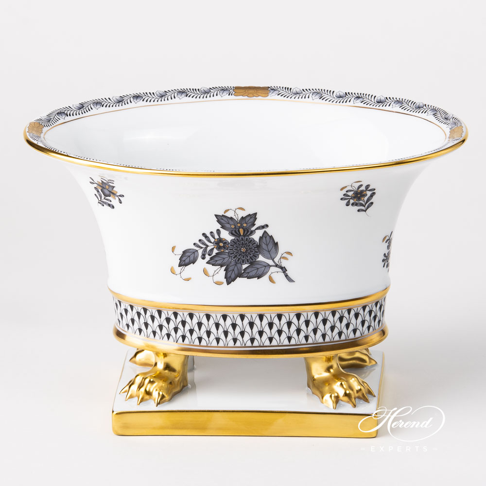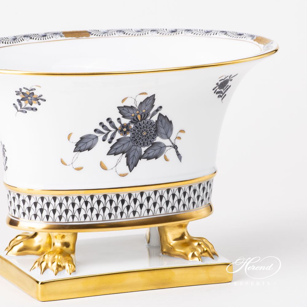 Herend Empire Vase on Stand, medium – Herend, Apponyi Black with Black Fishnet – ANG+VHN design.