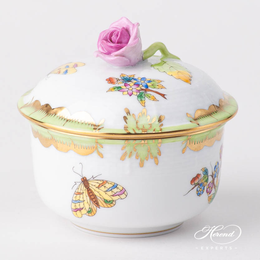 Herend fine china Fancy Box / Sugar Basin with Rose Knob – Herend Queen Victoria – VBO design.