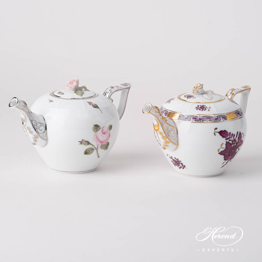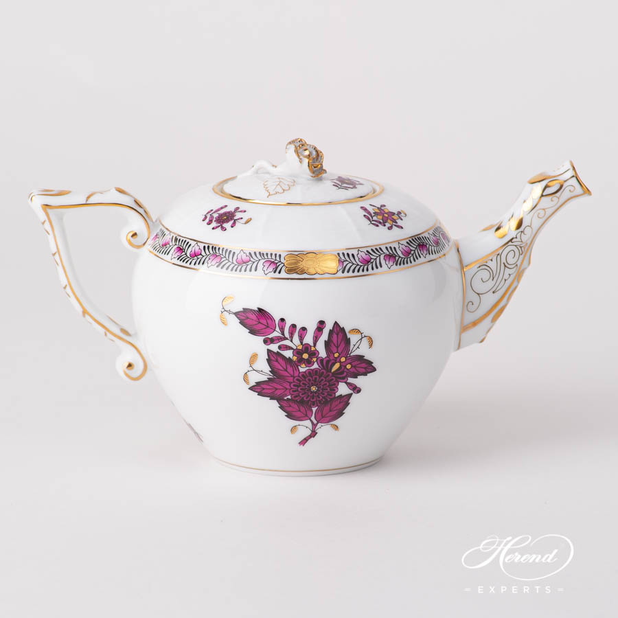 Herend porcelain Miniature Teapot with Rose Knob – Herend, Chinese Bouquet / Apponyi Burgundy – AP3-X1 design.