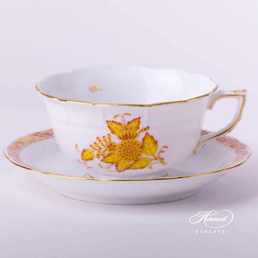 Herend fine china Tea Cup w. Saucer – Herend Chinese Bouquet Yellow / Apponyi Yellow – AJ design.