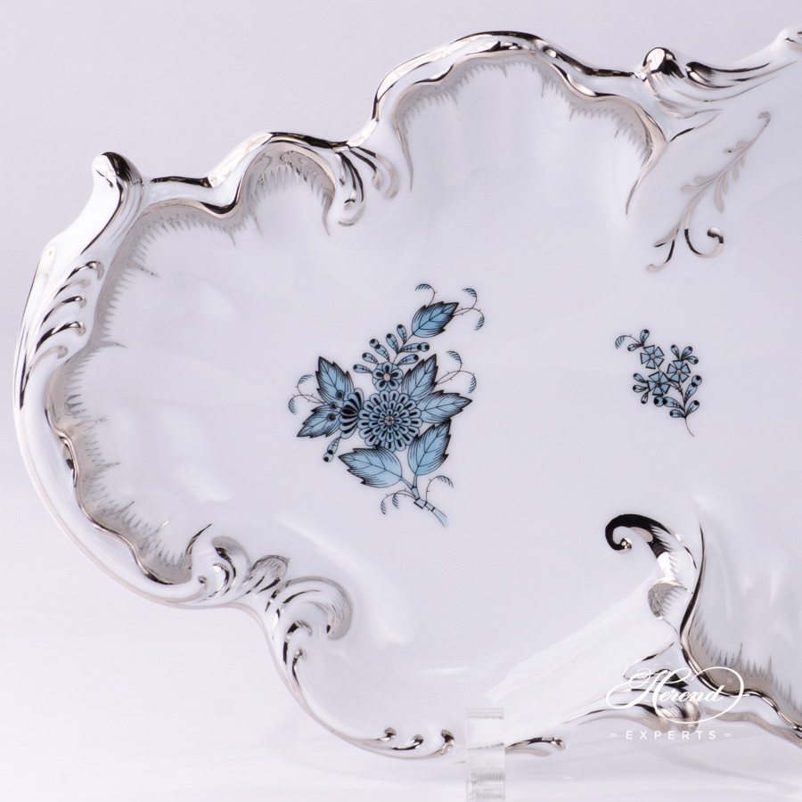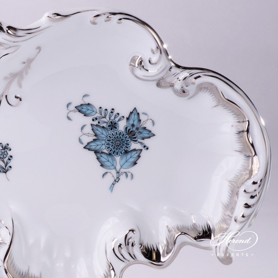 Herend fine china Dish Rococo / Tray – Herend Chinese Bouquet / Apponyi Turquoise w. Platinum – ATQ3-PT design.