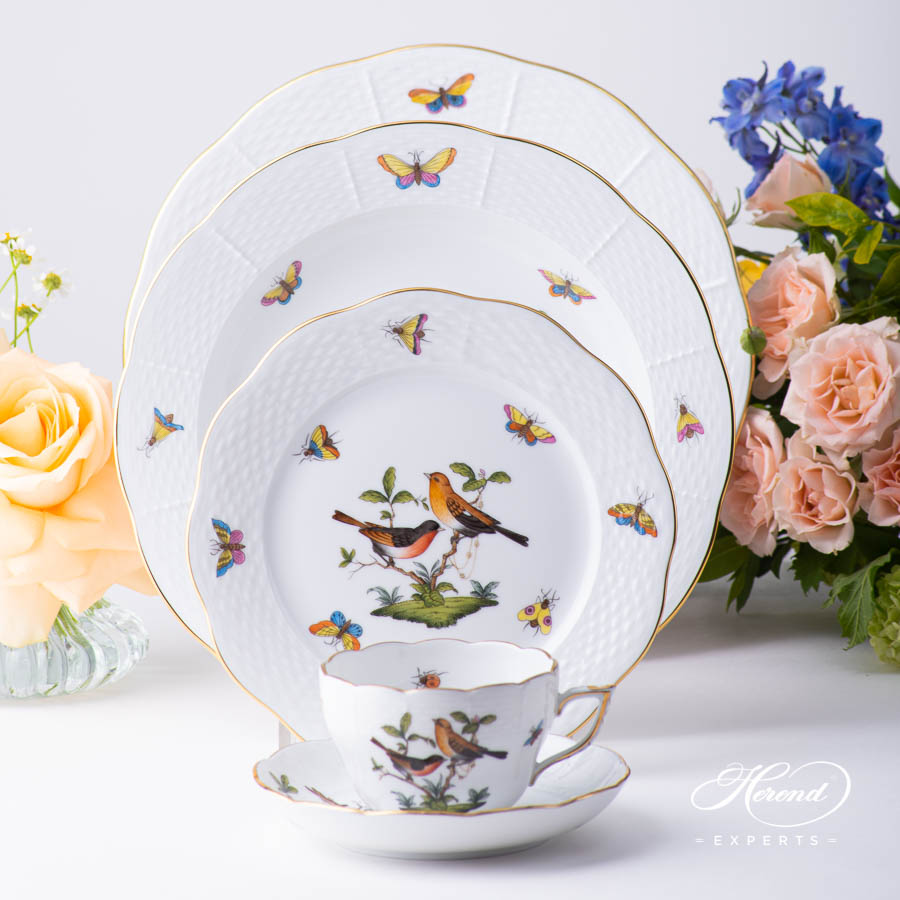 Herend porcelain Place Setting Five Pieces – Herend, Rothschild Bird – RO pattern.