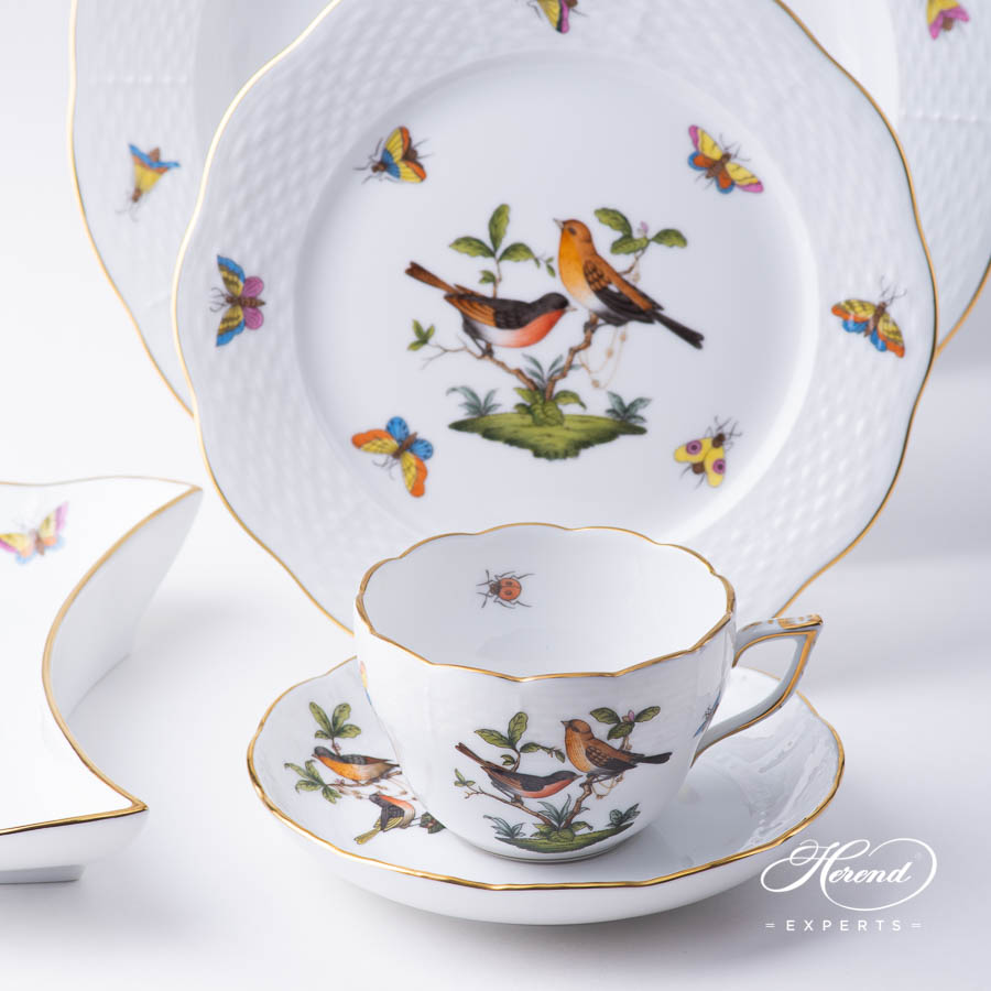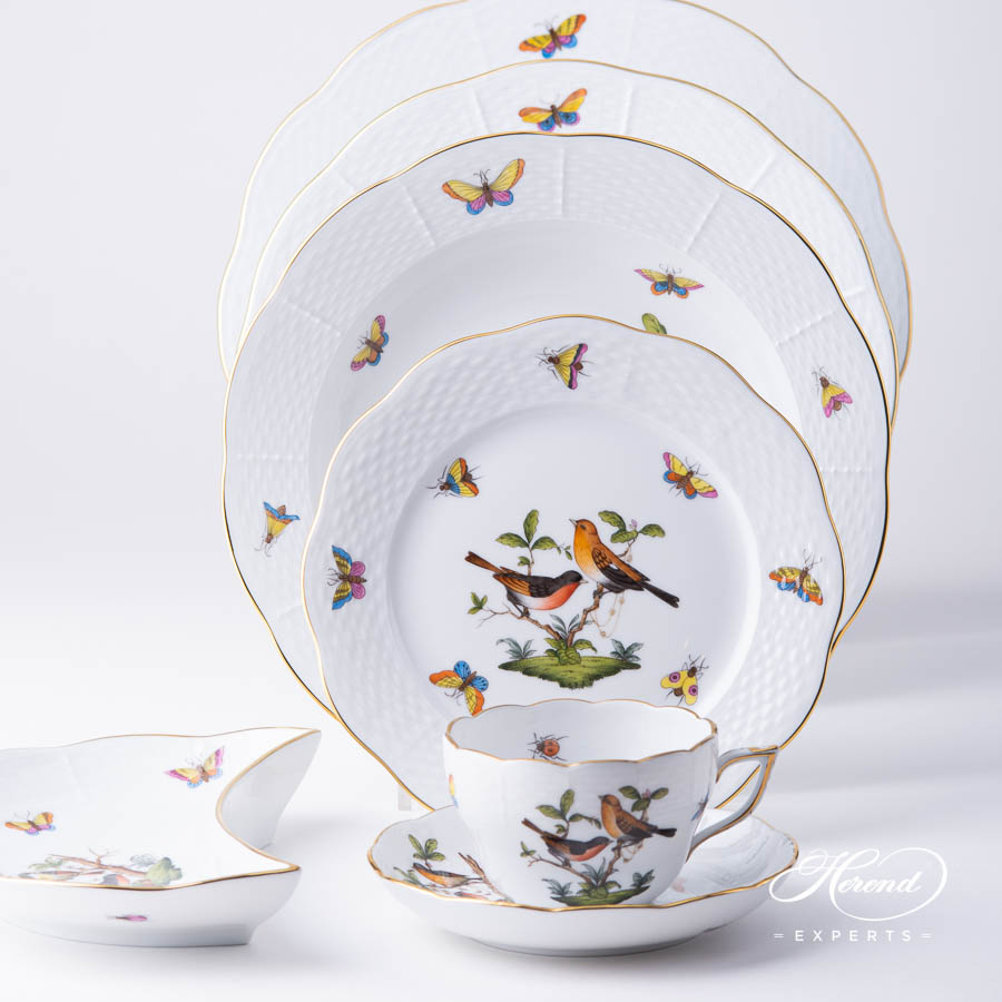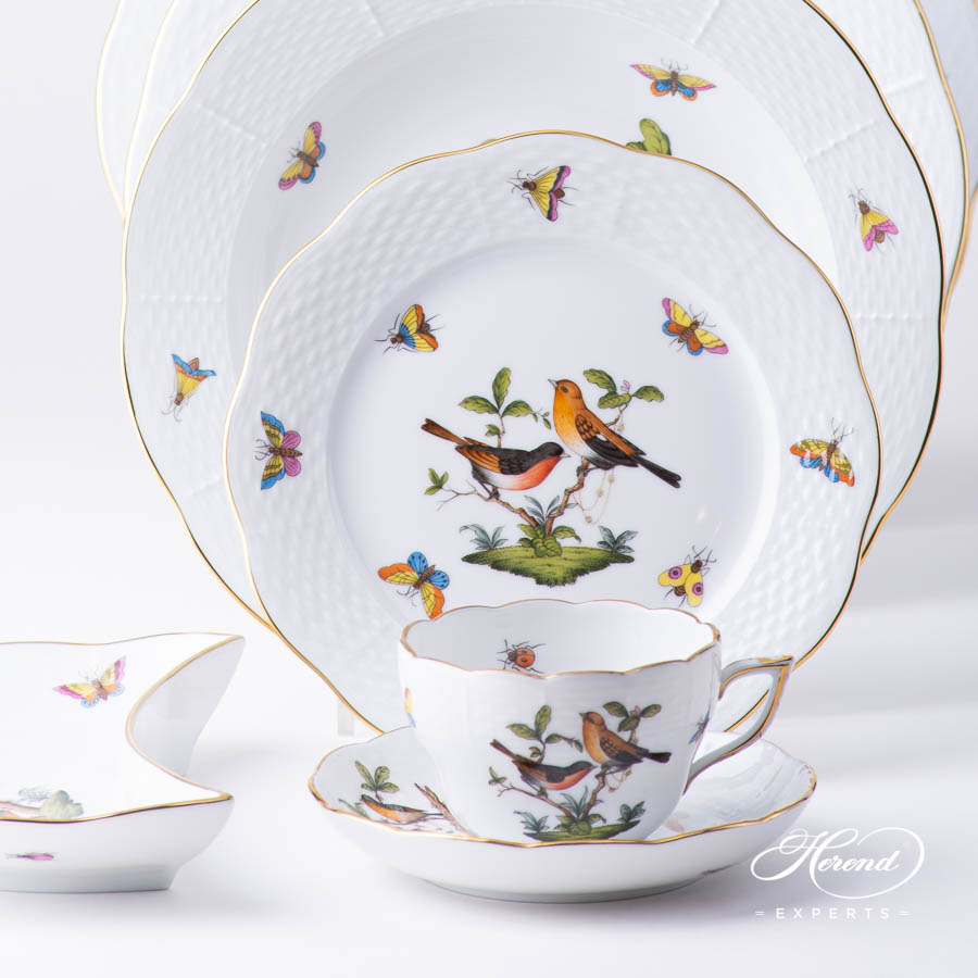 Herend porcelain Place Setting Seven Pieces – Herend, Rothschild Bird – RO pattern.