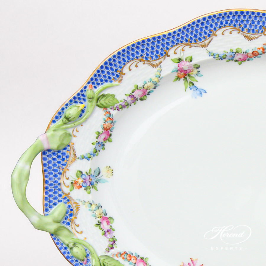 Herend porcelain Oval Dish with Handles – Herend Flower Garland with Blue Fish Scale – LTBS-EBH design.