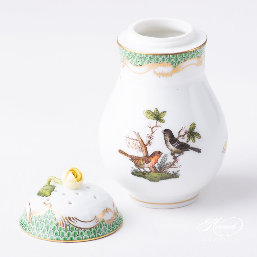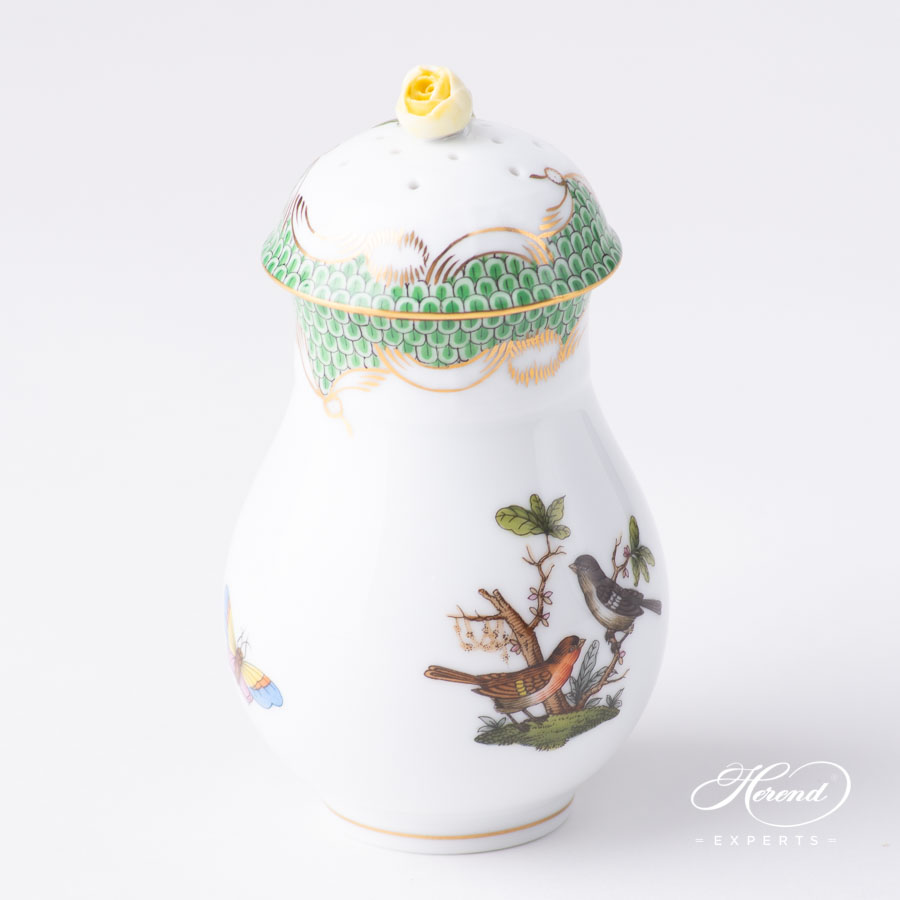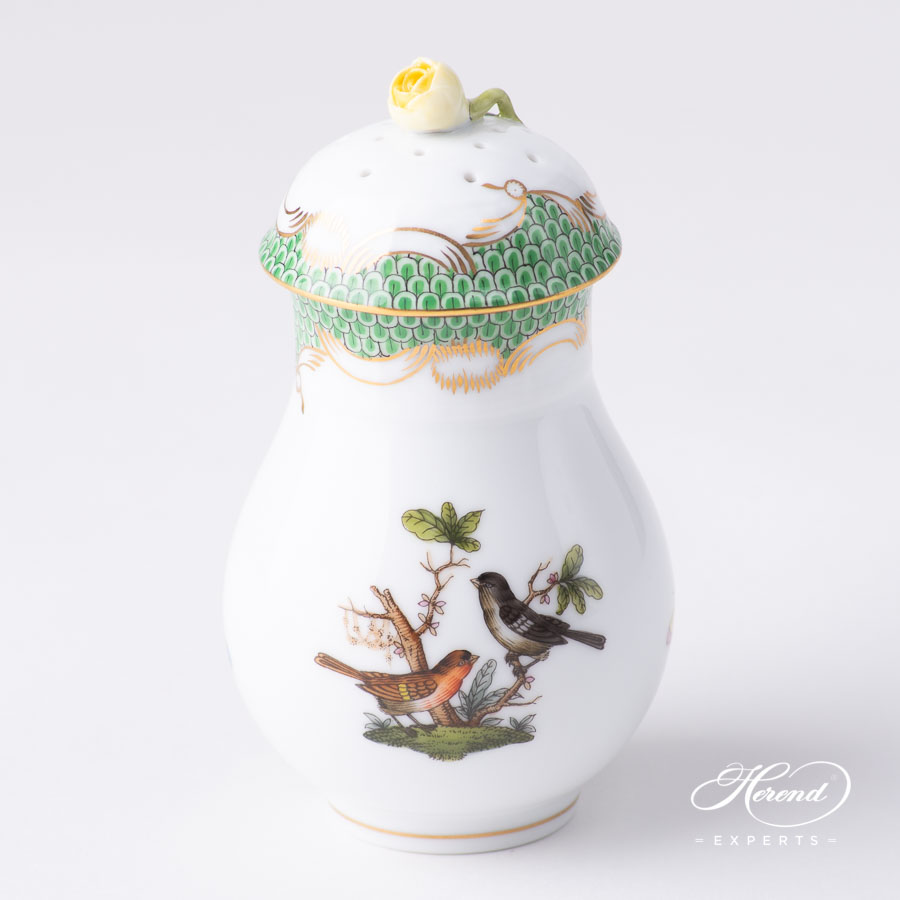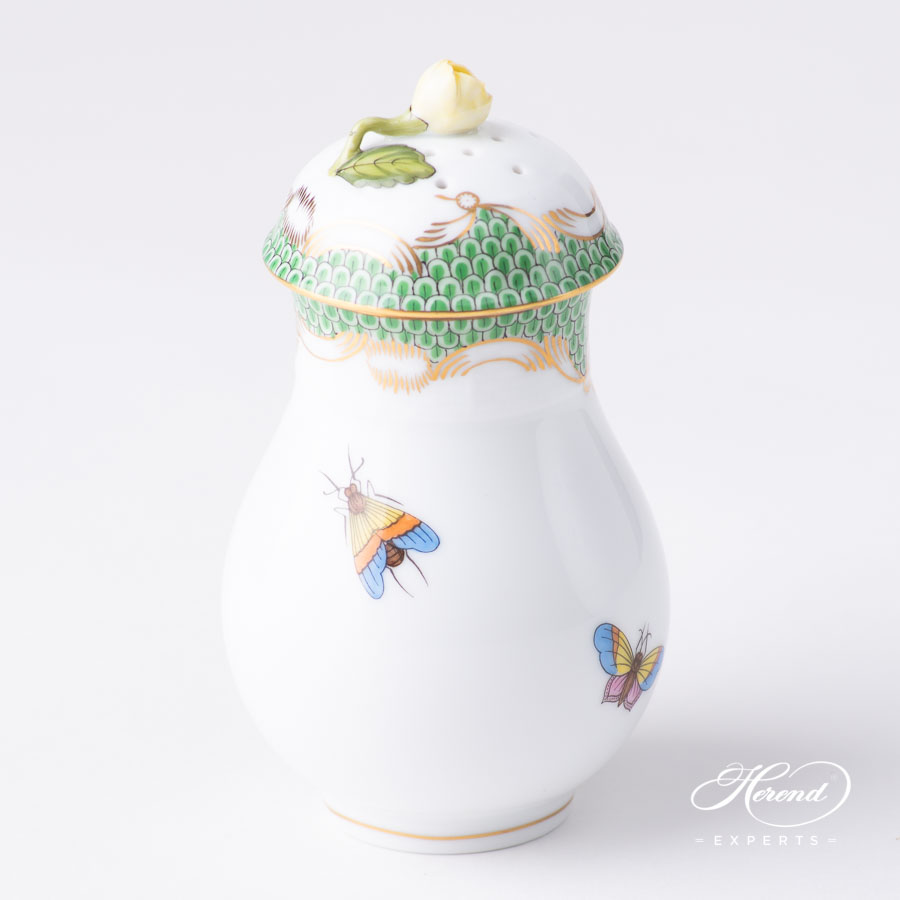 Herend porcelain Powdered Sugar Shaker with Rose Knob – Herend, Rothschild Bird Light Green Fish Scale – RO-ETV1 design.