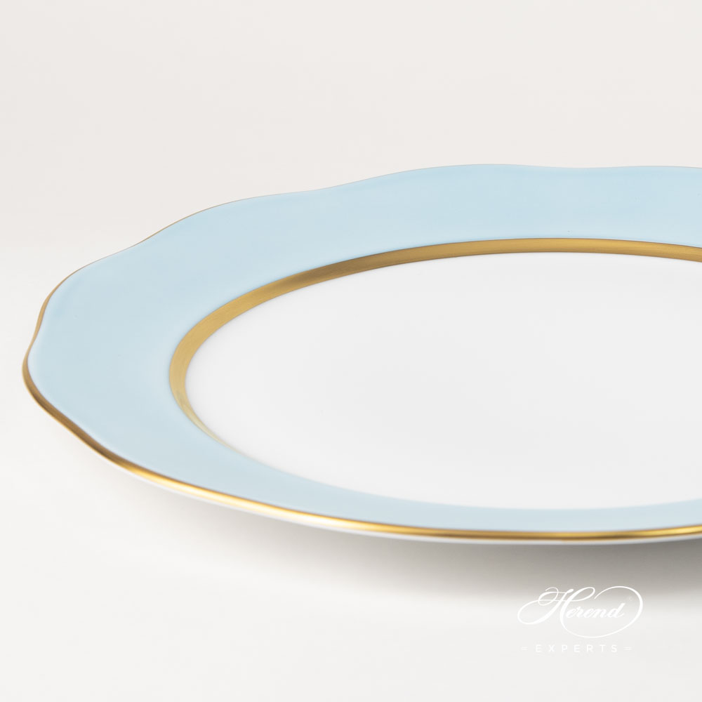 The Serving Plate / Charger – Silk Ribbon / Turquoise Edge design is available in several diameters. Also, Serving Plates and Dessert Plates can be purchased for most of the Herend patterns with a monochrome edge.