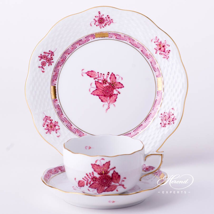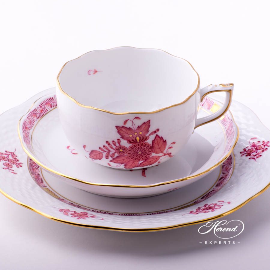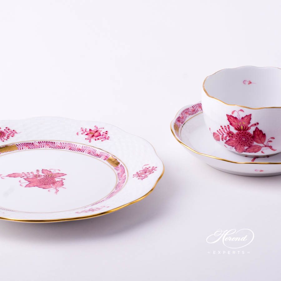 Herend fine china Tea Cup with Dessert Plate – Herend Chinese Bouquet Raspberry / Apponyi Purple – AP design.