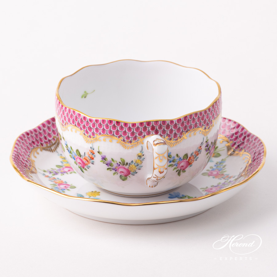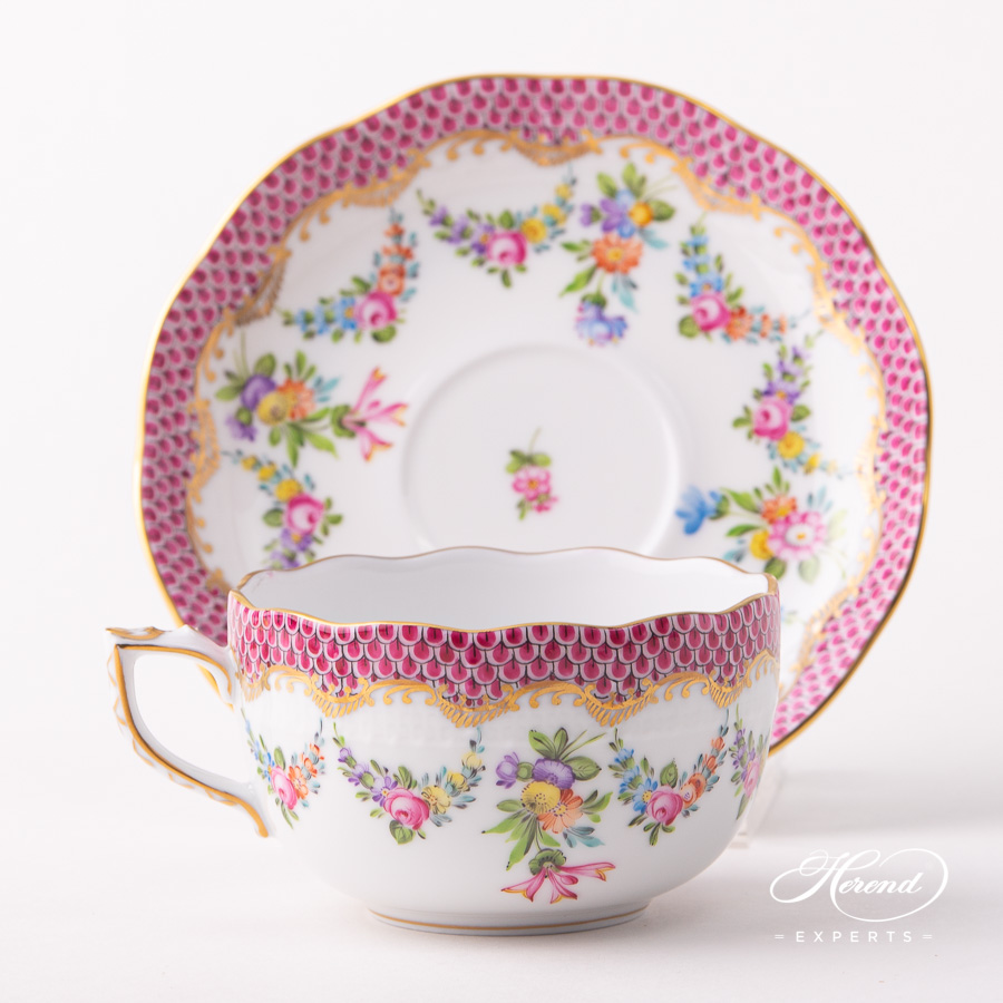 Herend porcelain Teacup with Saucer – Herend, Flower Garland with Pink Fish Scale – LTBS-EPH design.