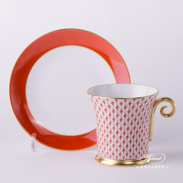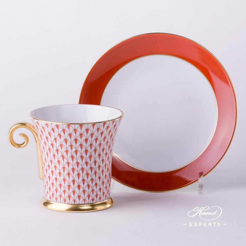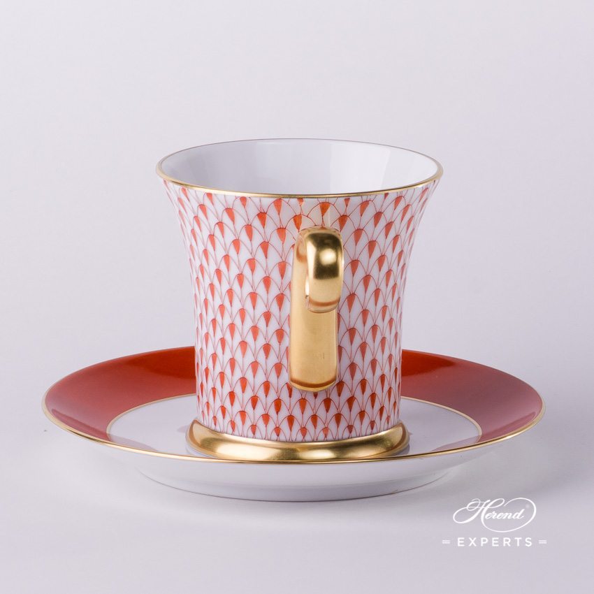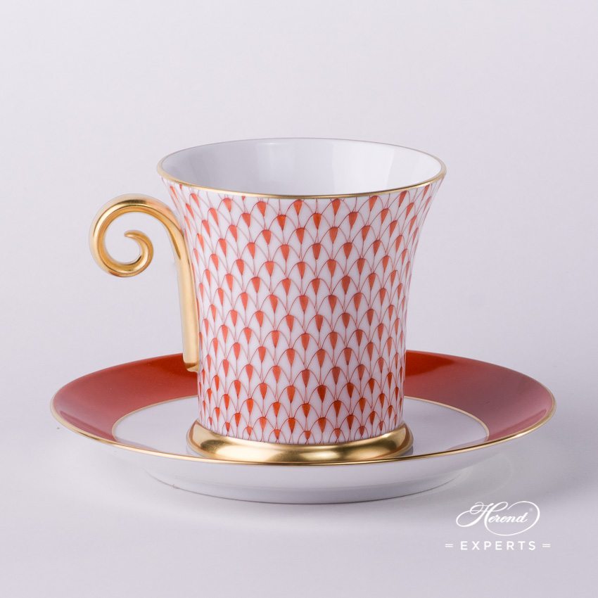 Herend fine china Teacup with Saucer – Herend, Red Fishnet – VH pattern.