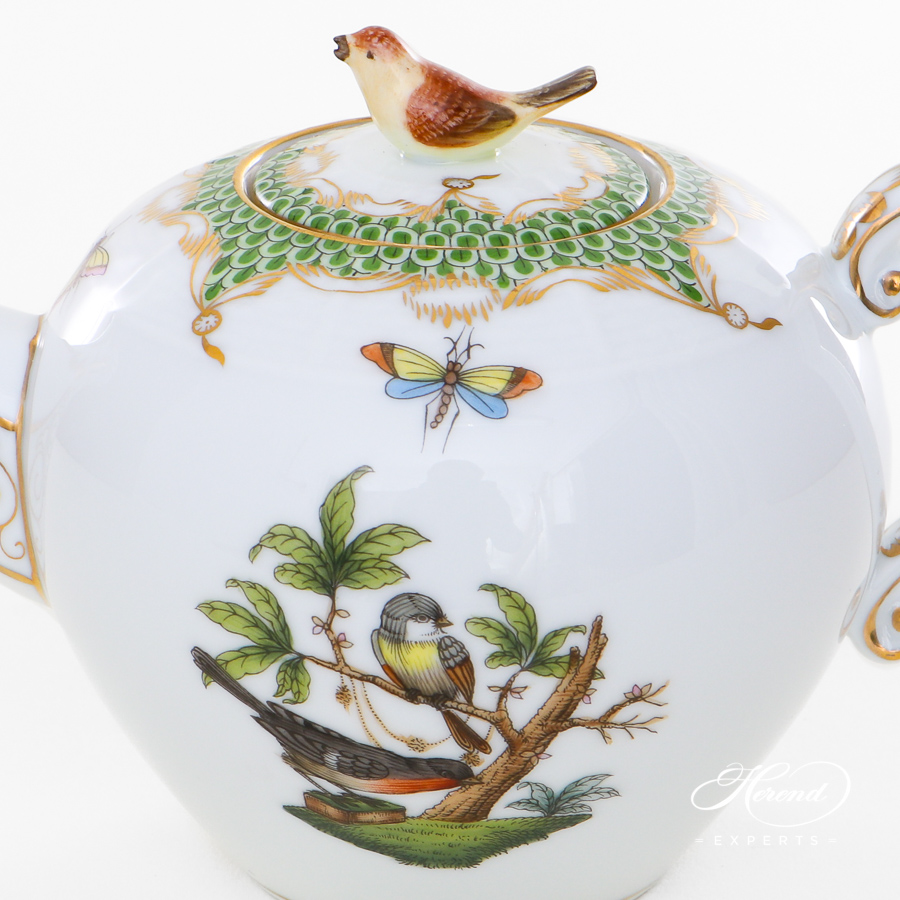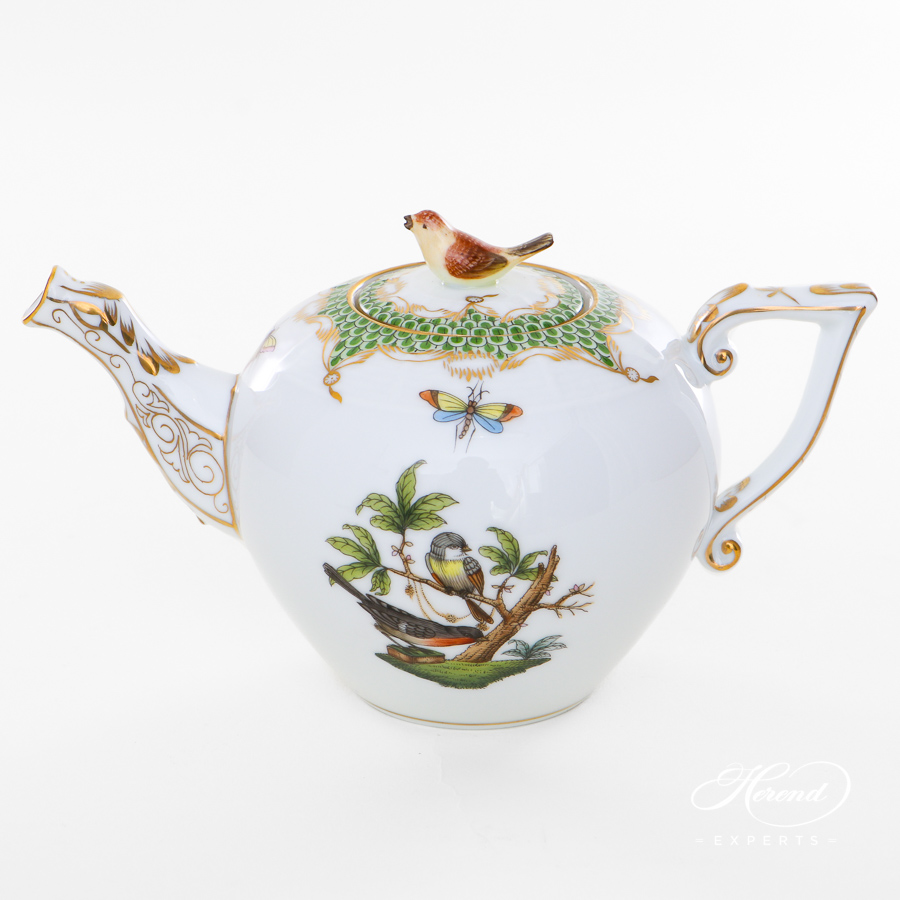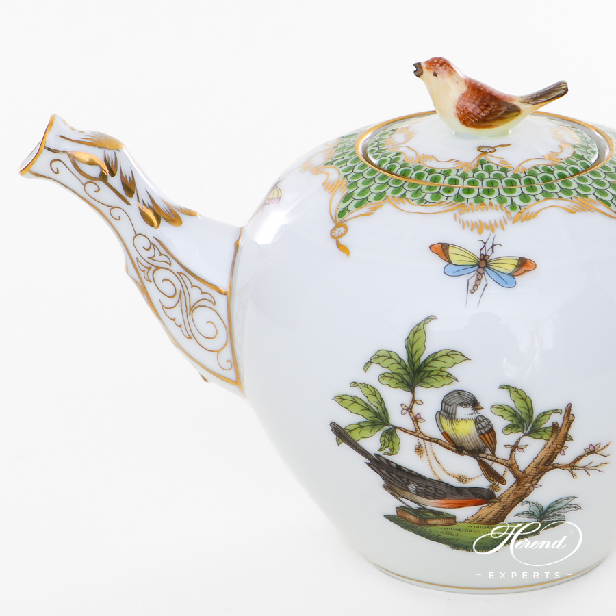 Herend porcelain Tea Pot with Bird Knob – Herend, Rothschild Bird Light Green Fish Scale – RO-ETV1 design.