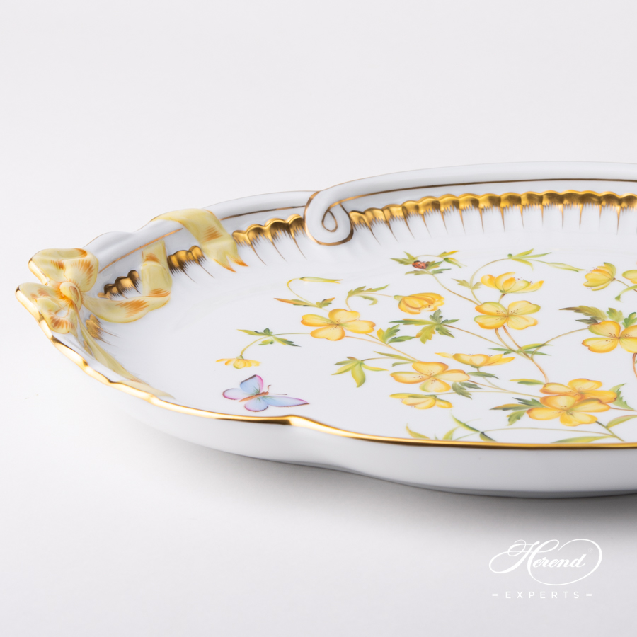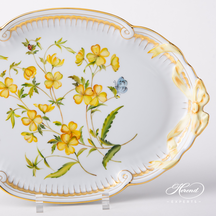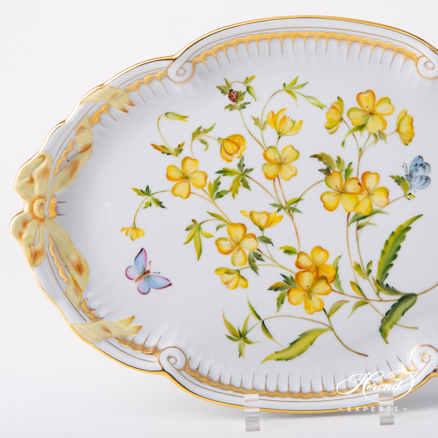 Herend porcelain Ribbon Tray – Herend, American Wildflowers / Evening Primrose – FLA-EP pattern.