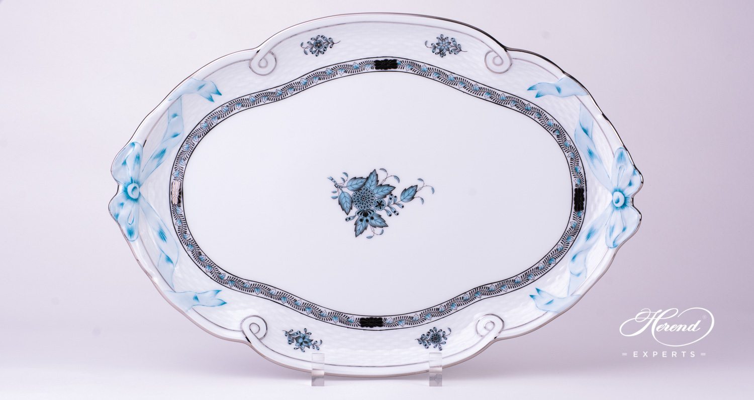 Herend fine china Tray with Ribbon – Herend Chinese Bouquet Turquoise / Apponyi Turquoise with Platinum – ATQ3-PT design.